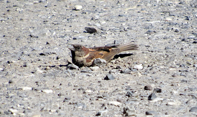 This sparrow looks like he just saw the sign above.