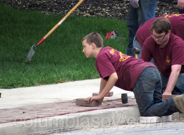 Boy Scouts (Troop 35) fix bricks at the DAC: