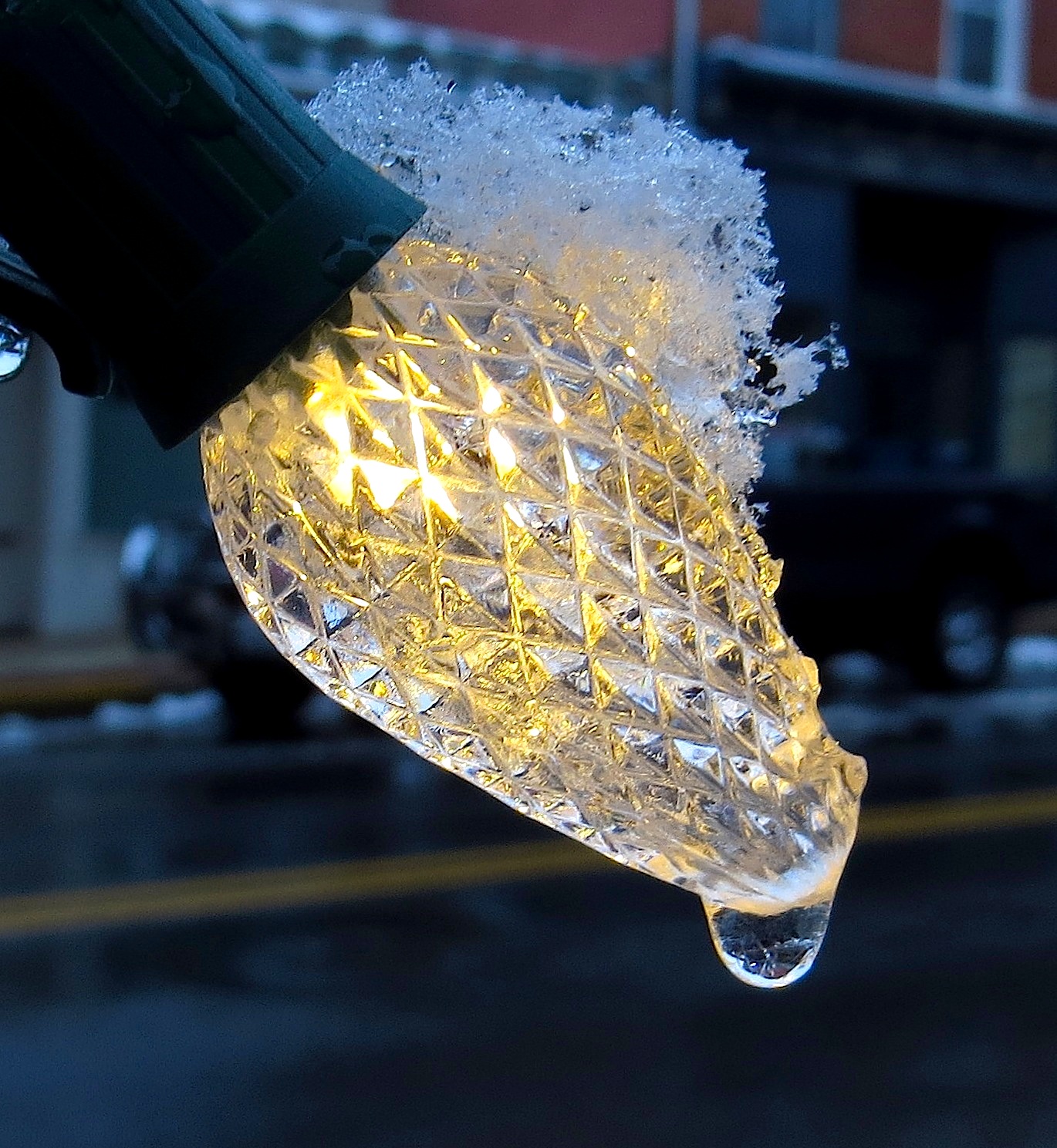 Round 3 Even though Columbia got 3-4 inches of snow today, holiday lights (like this one) on the posts along Locust Street held their own against the winter weather.
