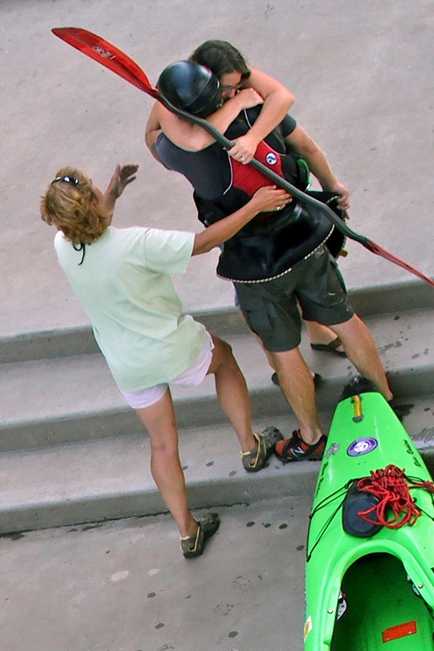 Kayakers returning to shore after finding body of lost swimmer Saturday morning