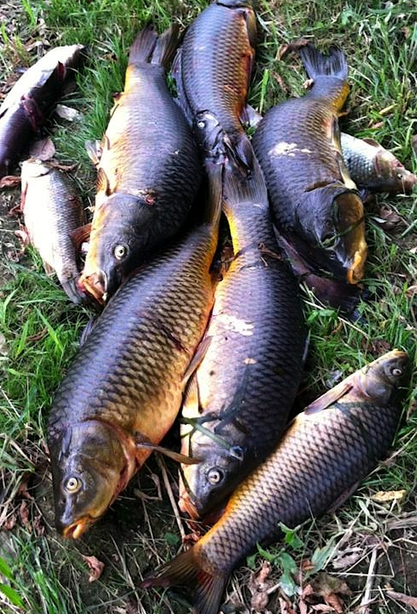 This picture was taken a little after five o’clock this afternoon. Someone dumped these fish near the railroad tracks on Malleable Road (or as we Columbians say it: MOW (as in OW!) – LUH – BULL Road).