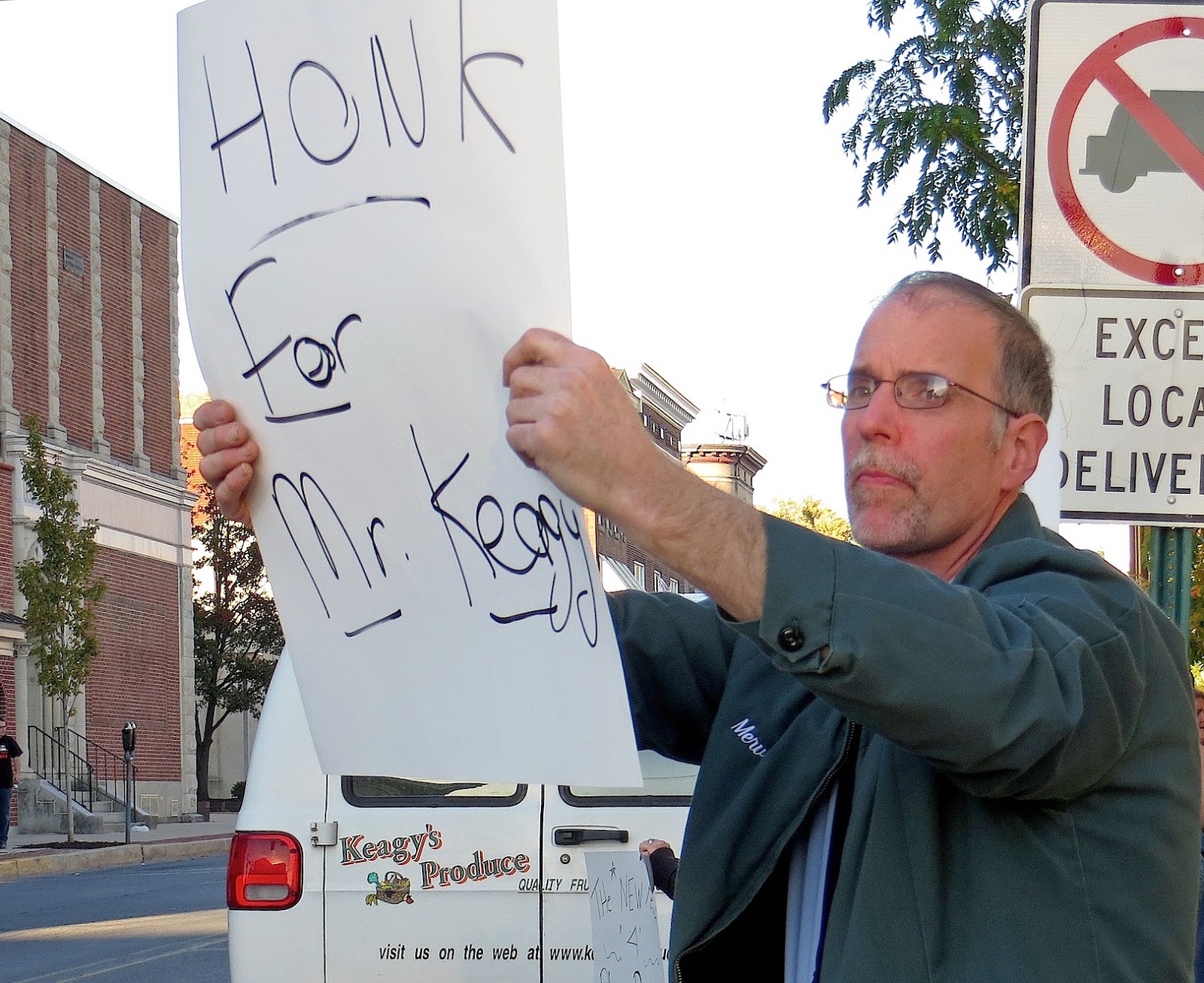 A rally was held on Monday, October 22nd, at 5 p.m. in front of the Borough Office, 308 Locust Street, in support of Carmen Swinehart and Keagy’s Produce and to protest the actions of the Market House Trust.