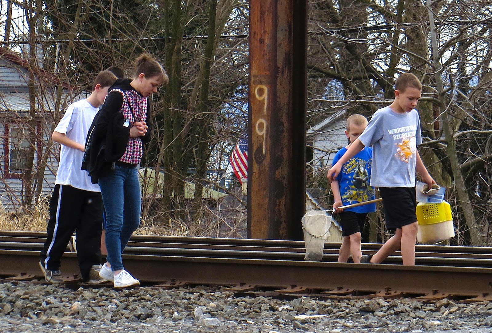 On Sunday, these folks were walking along the railroad tracks at the bottom of Locust Street.