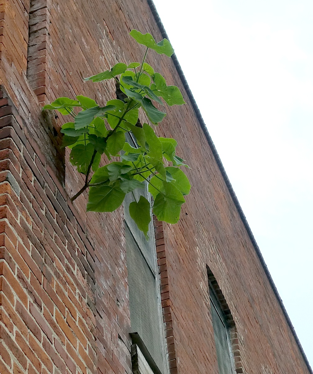 This is growing out of the side of a building on Second Street.