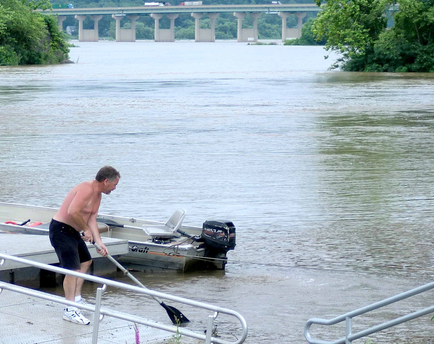 An industrious boater cleared debris from around one of the docks.