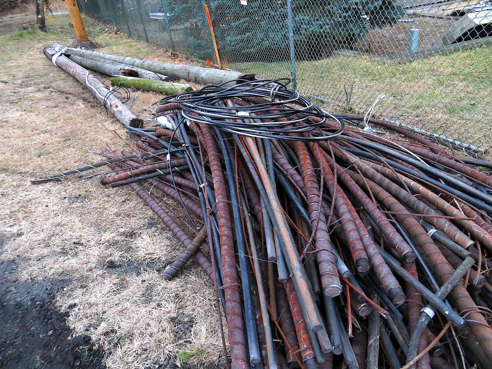 Other pieces of cable were cut and thrown onto this pile beside some discarded utility poles.