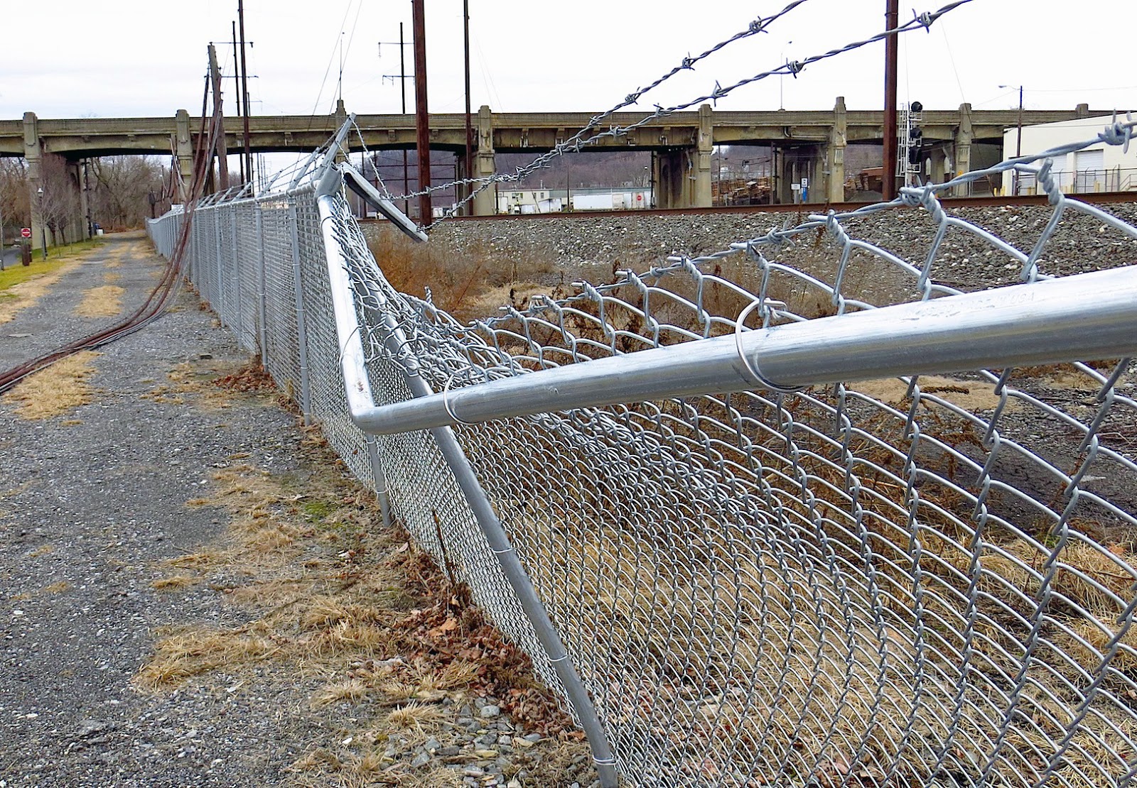 The fence separating Norfolk Southern’s property from River Park has been damaged.