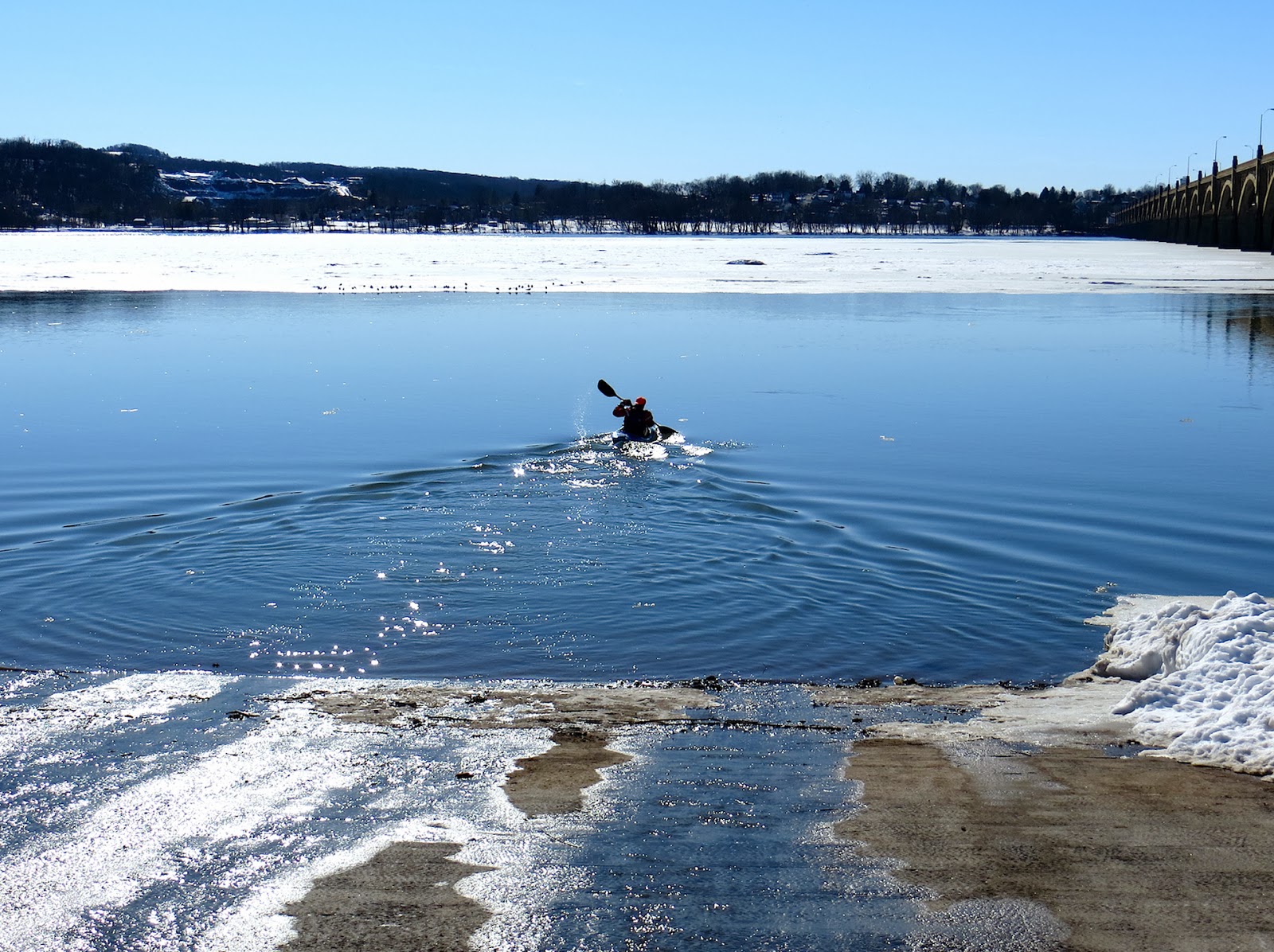 On Saturday afternoon, a group of men arrived at Columbia River Park to test-fly a drone and use it to film a kayaker (one of the group) in the Susquehanna. The endeavor lasted about an hour and drew a small crowd. The drone operators were somewhat tight-lipped about their enterprise, except to say they didn’t need FAA approval as long as they kept the drone below 400 feet. (That information was in answer to a question from one of the onlookers.)