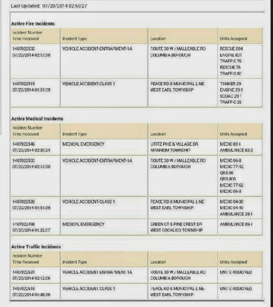 Screenshot of Lancaster County-Wide Communications (LCWC) page from this morning