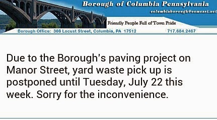 Yard waste pickup date changed Share this: Share on X (Opens in new window) X Share on Facebook (Opens in new window) Facebook More Share on Bluesky (Opens in new window) Bluesky Share on X (Opens in new window) X Like Loading... Related