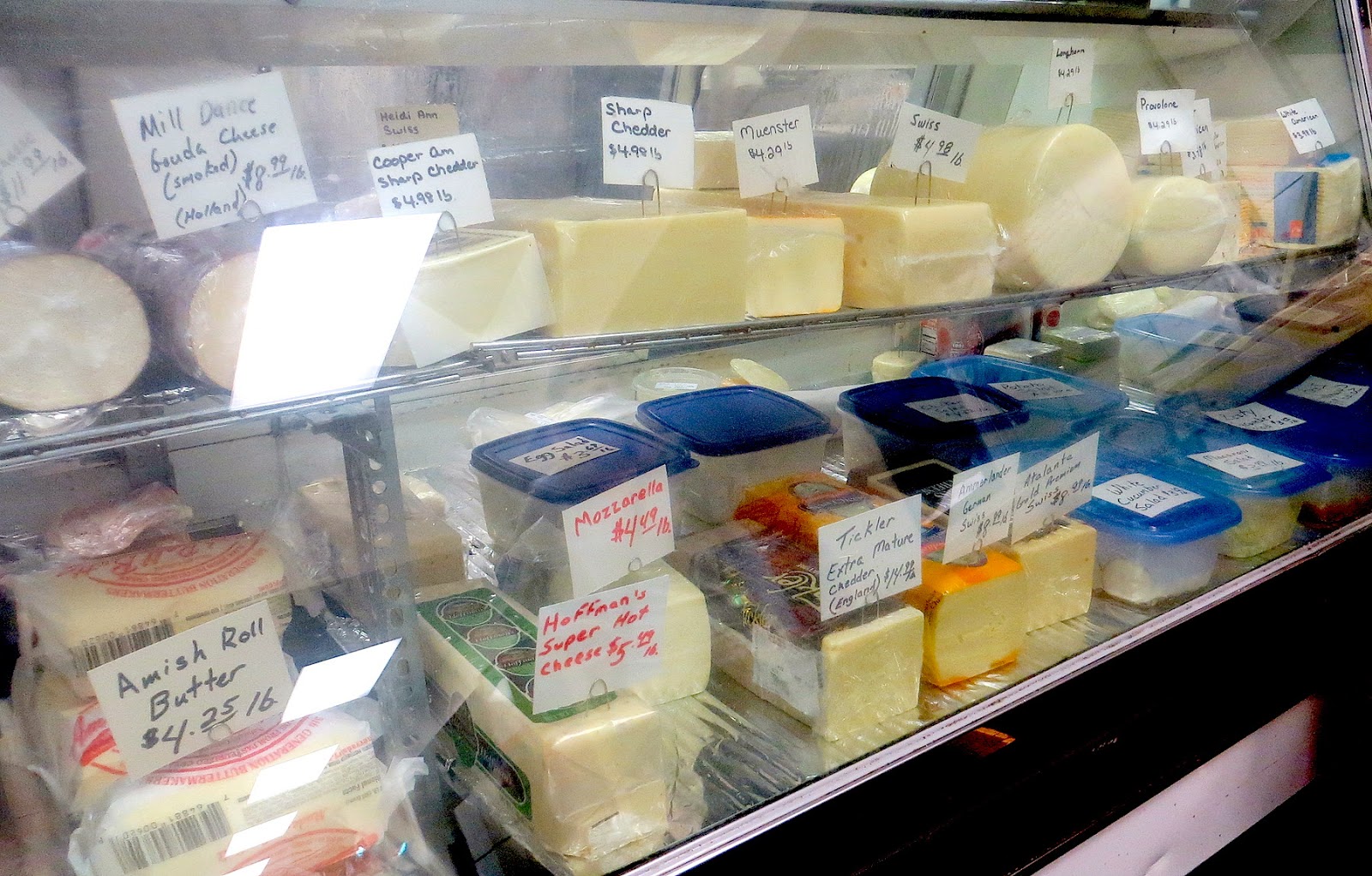 The deli offers a variety of cheeses at reasonable prices . . .