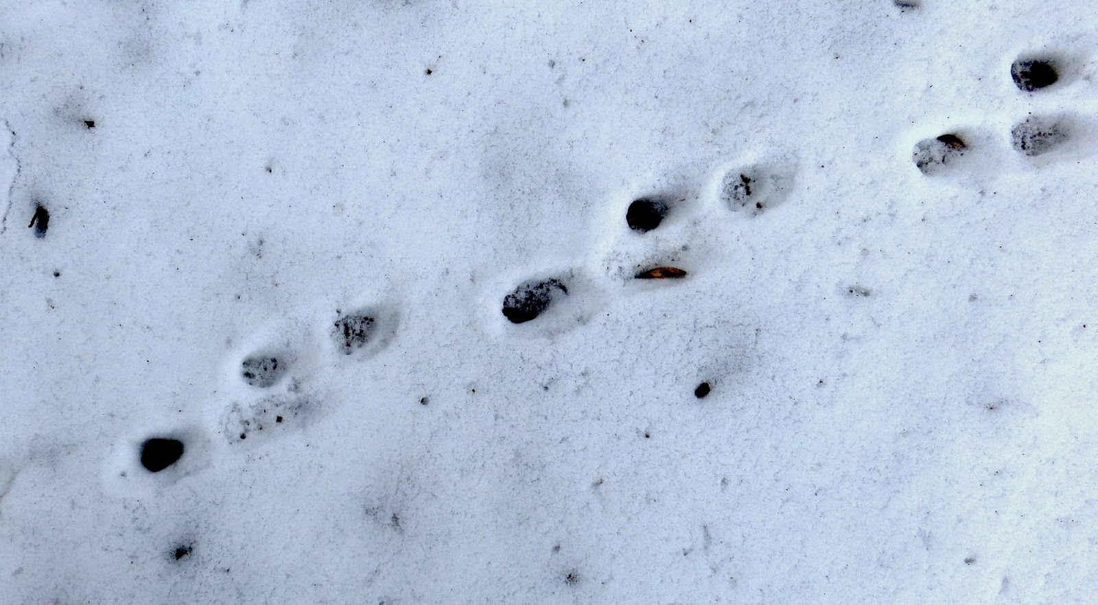 I was reminded of the rich variety of wildlife we have in the borough when I spotted a red fox today. Those are his footprints above. I won’t say where, because some yokel is liable to trap him, skin him and sell his pelt so someone can make a pair of gloves. He needs his fur more than we do.