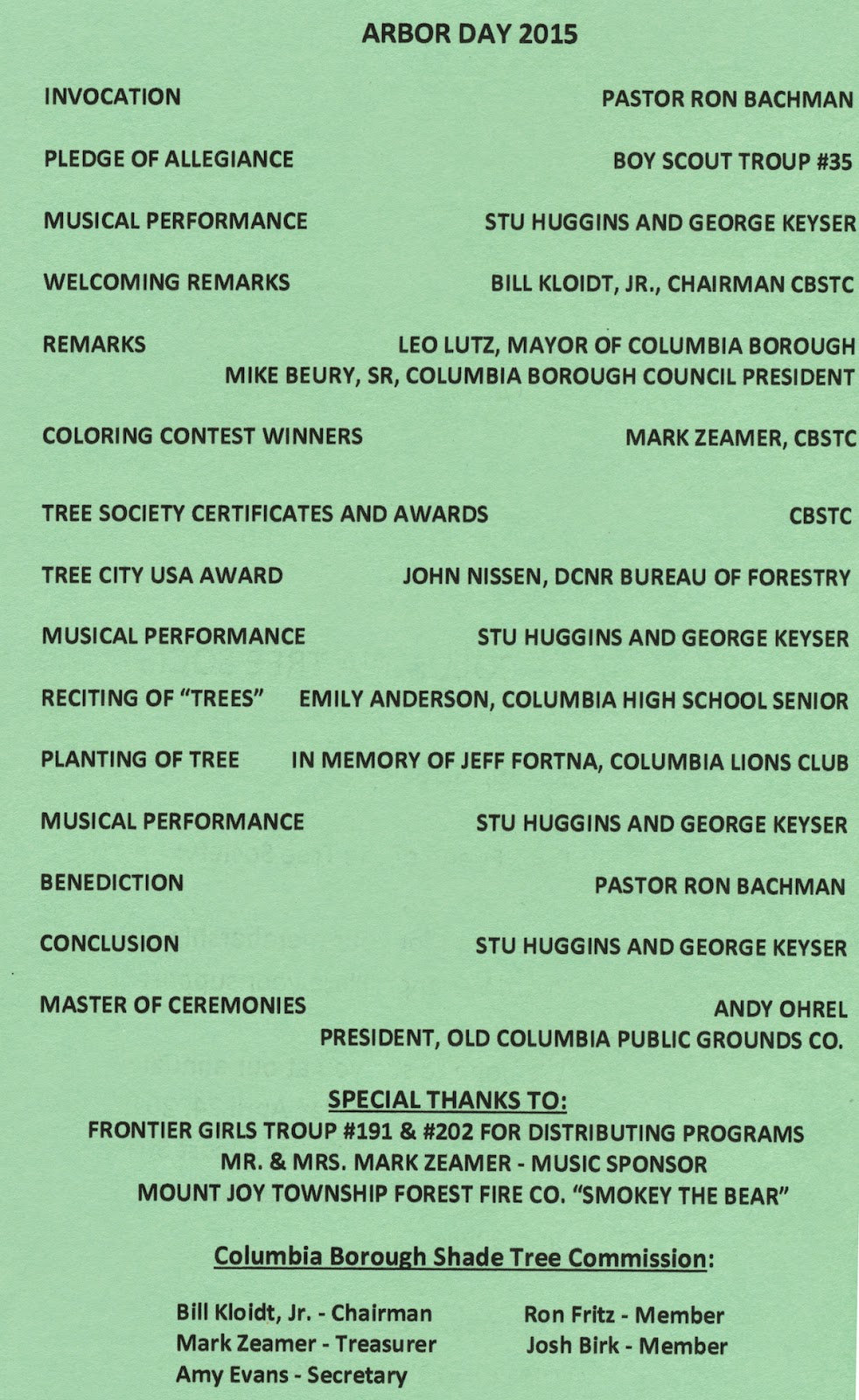 Columbia Tree Society 24th Annual Arbor Day Celebration 6 p.m. on Friday, April 24, at Locust Street Park . . . Share this: Share on X (Opens in new window) X Share on Facebook (Opens in new window) Facebook More Share on Bluesky (Opens in new window) Bluesky Share on X (Opens in new window) X Like Loading... Related
