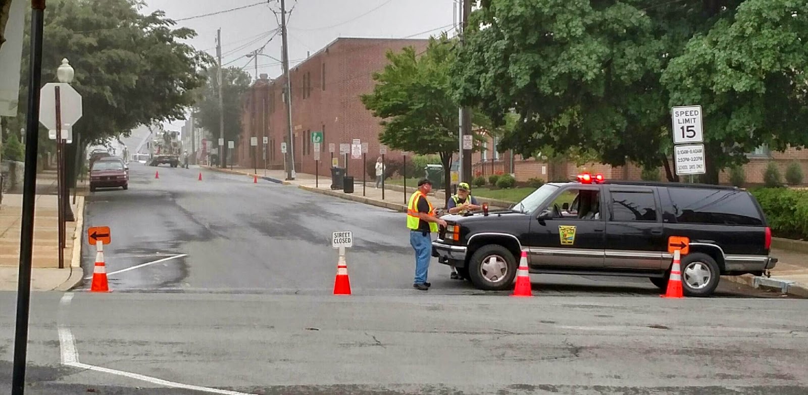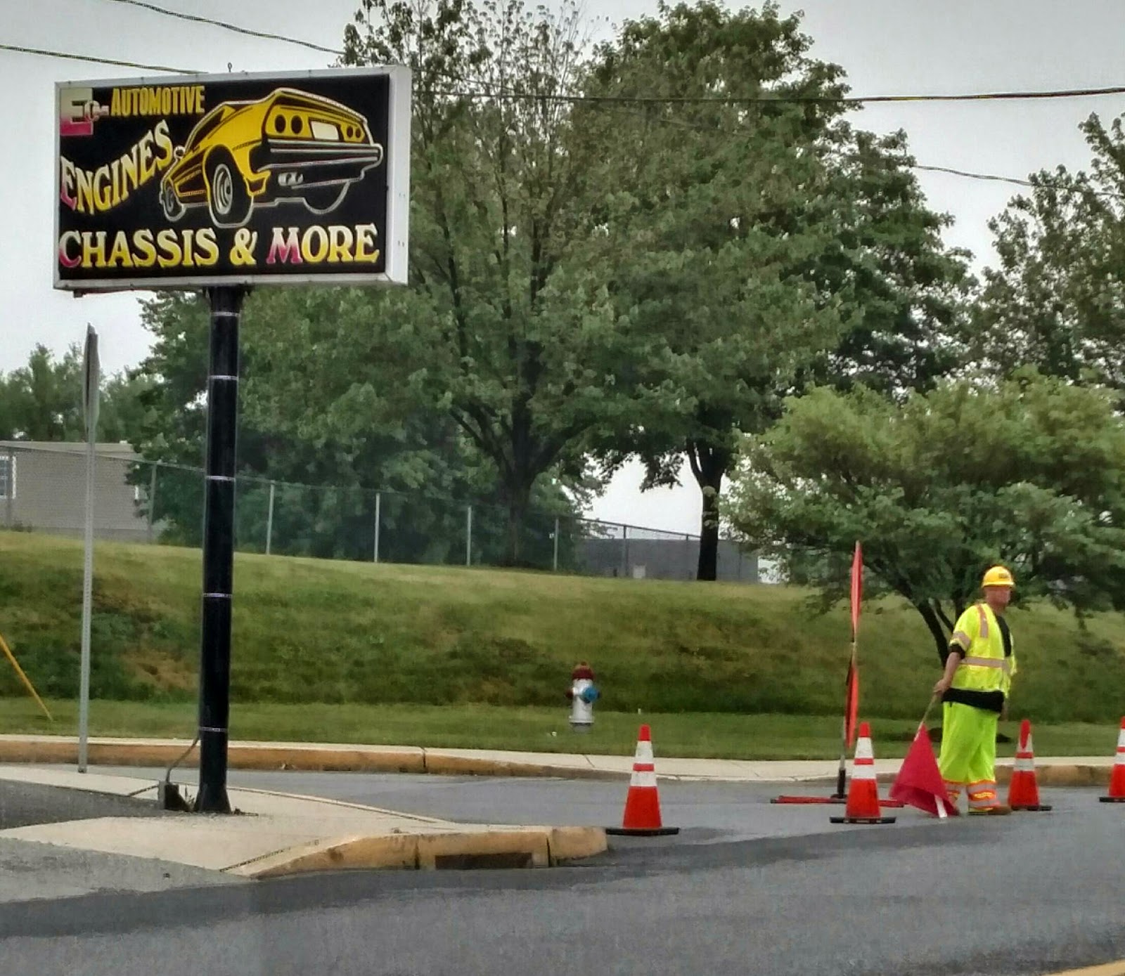 Temporary stop sign at Locust Street and Lancaster Avenue