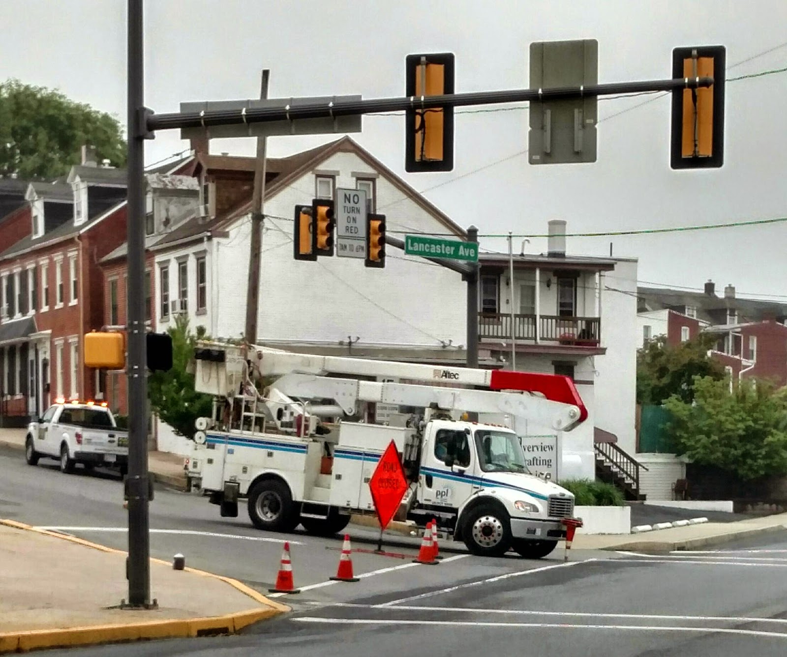 Temporary stop sign at Locust Street and Lancaster Avenue