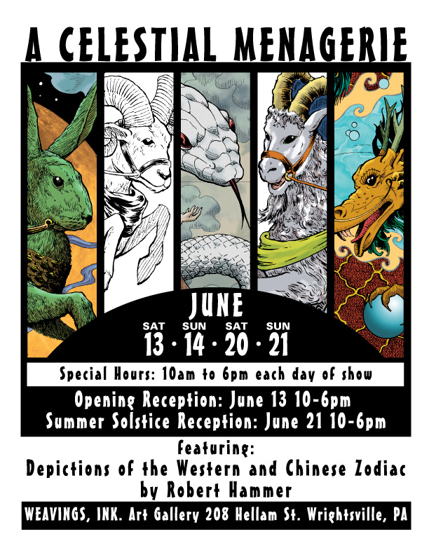 Robert Hammer is having a solo art show at Weavings, INK Art Gallery in Wrightsville beginning this weekend. The show will be open on Saturday and (Special hours for this show only)… Sunday for June 13th, June 14th and June 20th and the 21st. The hours are from 10am-6pm each day of the show, and Mr. Hammer will be gallery sitting each day as well. There will be an Opening Reception on June 13th from 10am-6pm.Refreshments and light snacks will be served. On the final day of the show June 21, A Summer Solstice party will be held from 10am-6pm. The Receptions are FREE to attend and open to the public.