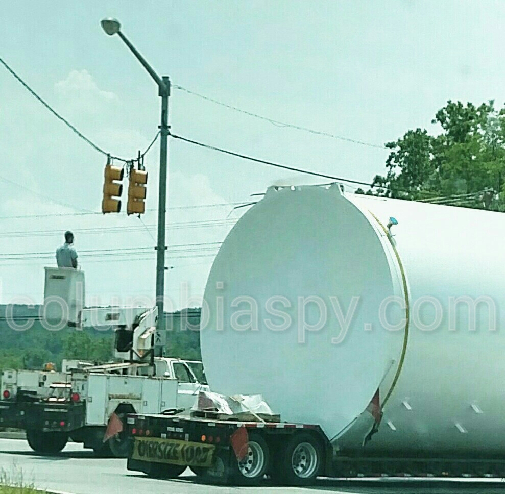 On Friday, a large storage tank was transported from Elizabethtown to York and briefly passed through Columbia when it entered the Wrights Ferry (Route 30) Bridge.
