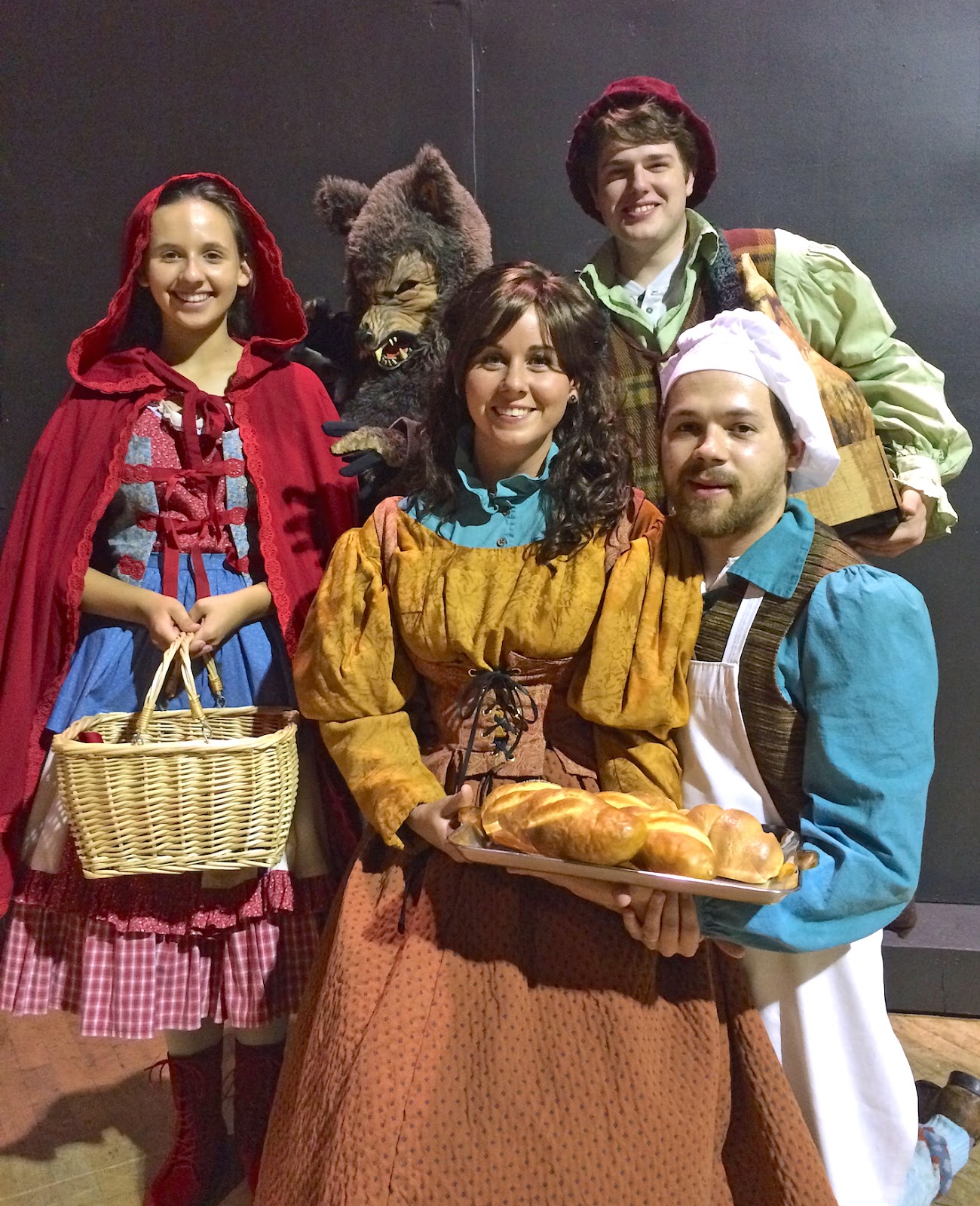 (L to R in above photo: Little Red, Wolf, Baker’s Wife, Jack, Baker)