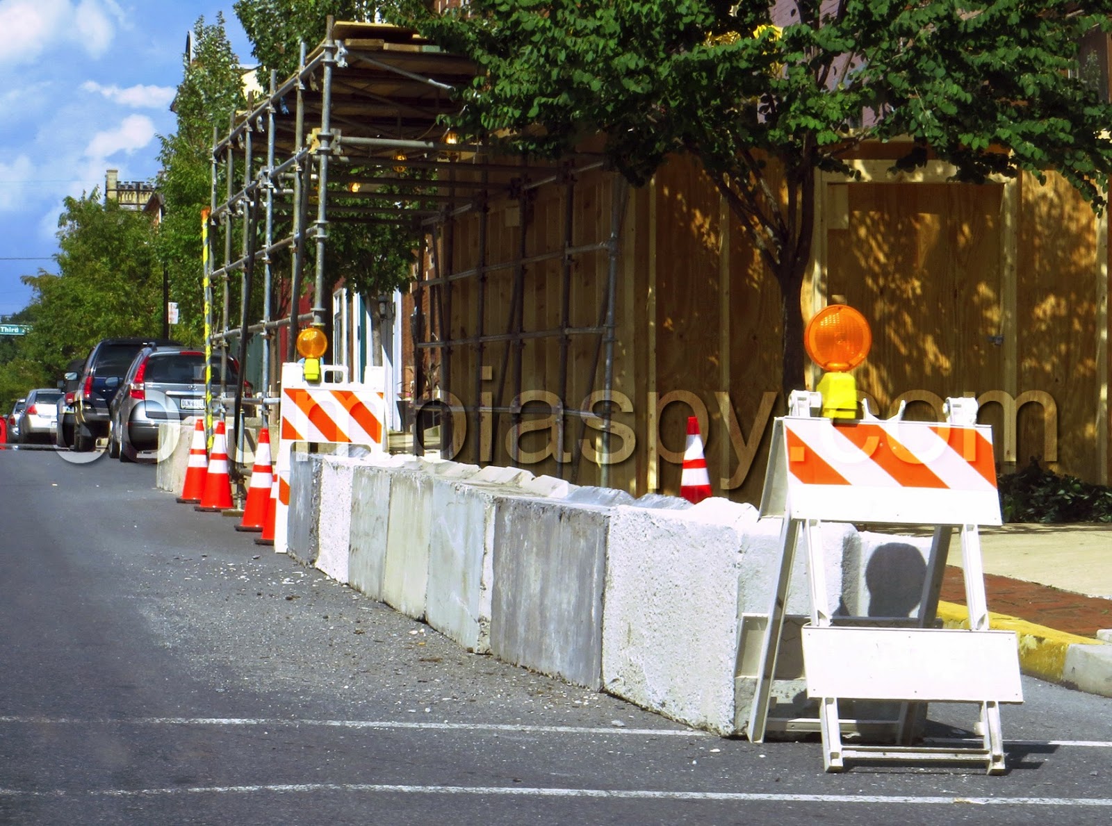 Passageway installed on Locust Street, complete with lights, ramp, and blocks