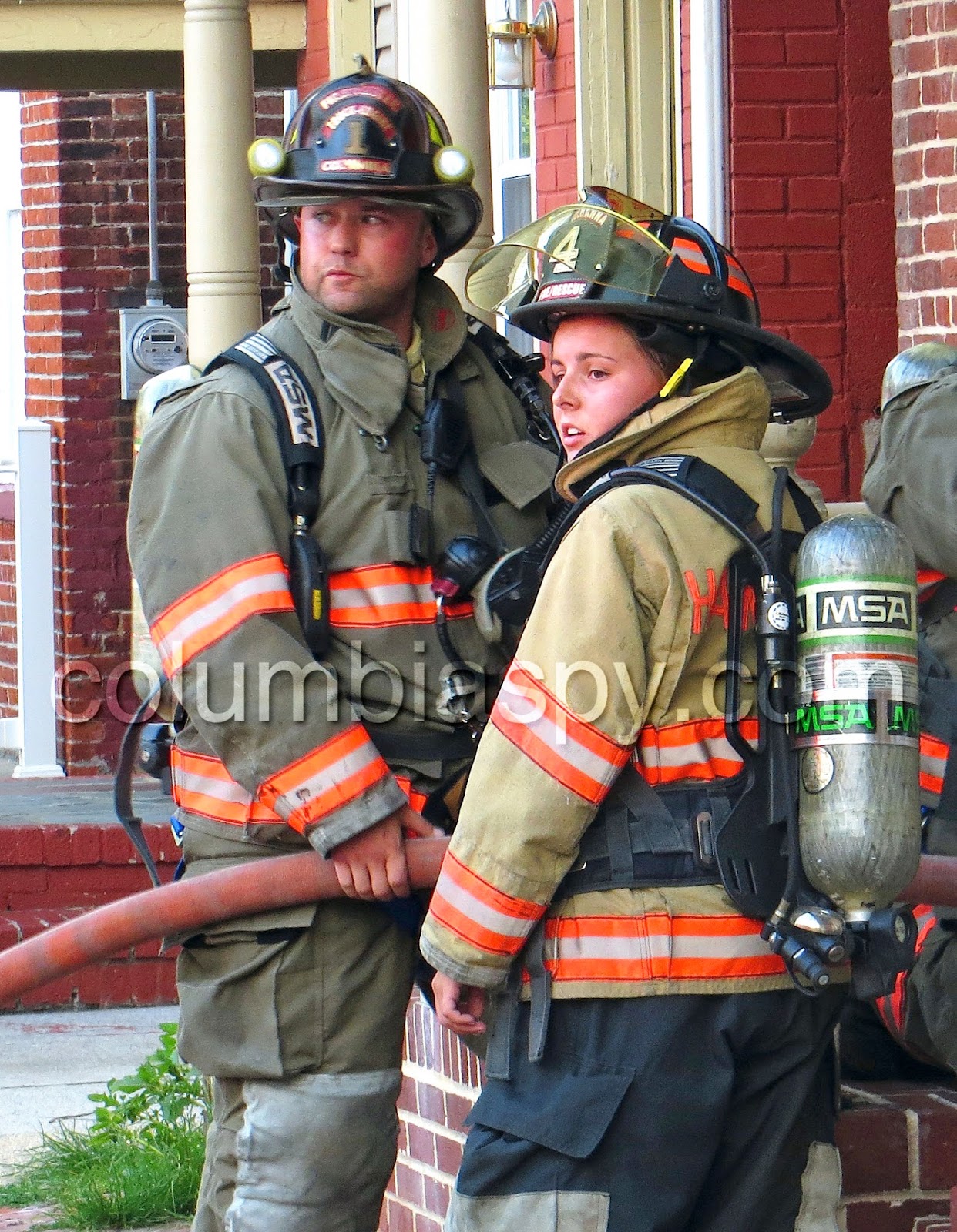 The newly consolidated Columbia Borough Fire Company responded to a fire call on Locust Street this evening, joined by vehicles and personnel from Wrightsville and Mount Joy Fire Departments. The emergency reportedly stemmed from a grease fire in the kitchen at 729 Locust. The fire spread when an occupant threw water on it in an attempt to put it out. After attending to the fire, crews used fans to ventilate the residence as well as the neighboring property at 731 Locust.
