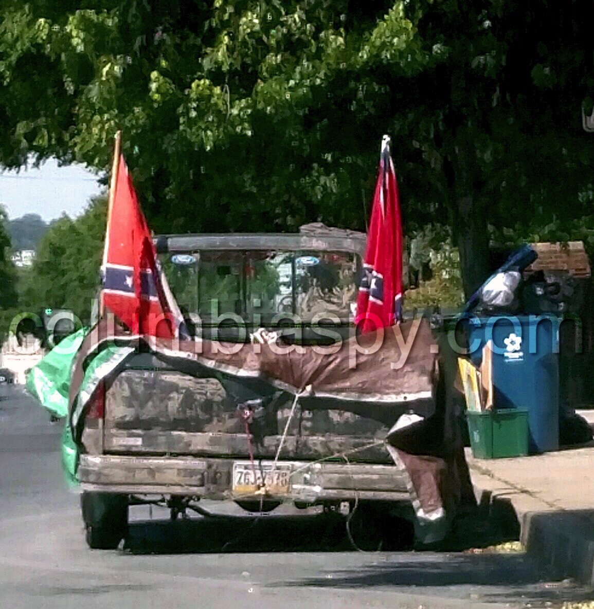 Now look at the photos below, showing pickup trucks seen around Columbia within the past year, each one displaying a Confederate flag (or two):