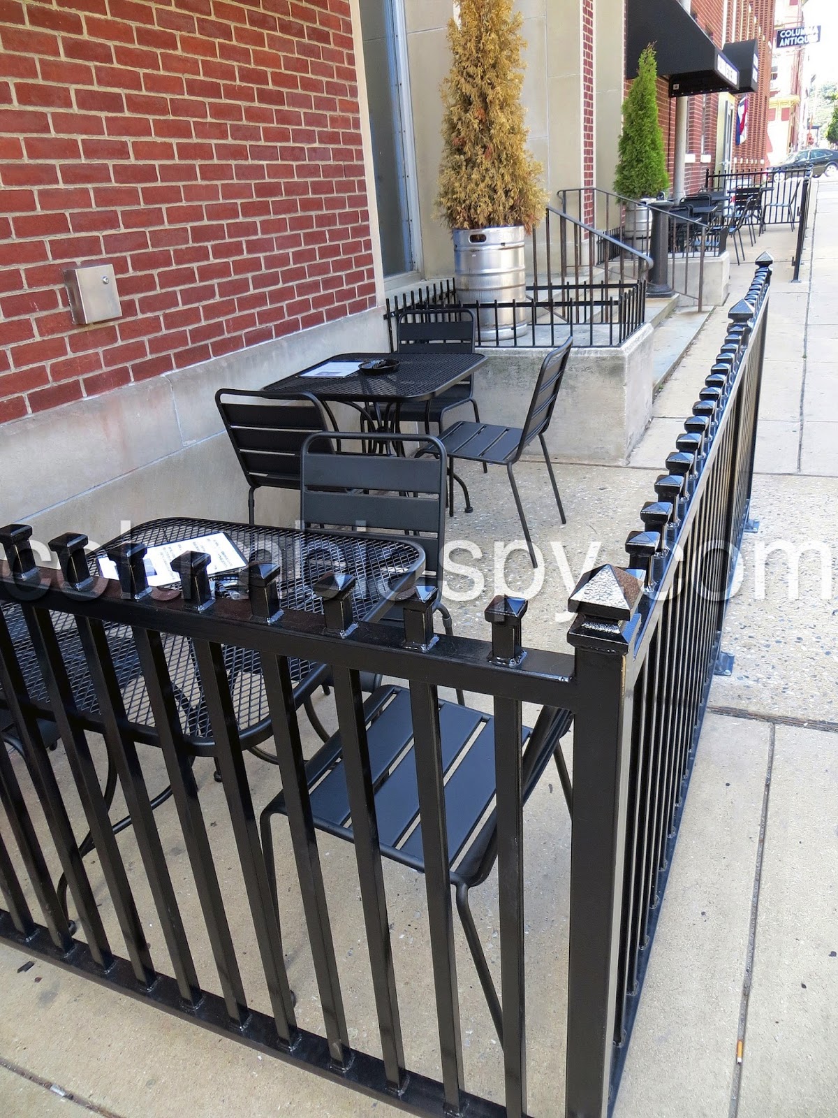Several tables have been placed in the front of Columbia Kettle Works on North Third Street, completing the outdoor seating project that included new awnings, and metal railings that enclose the area.