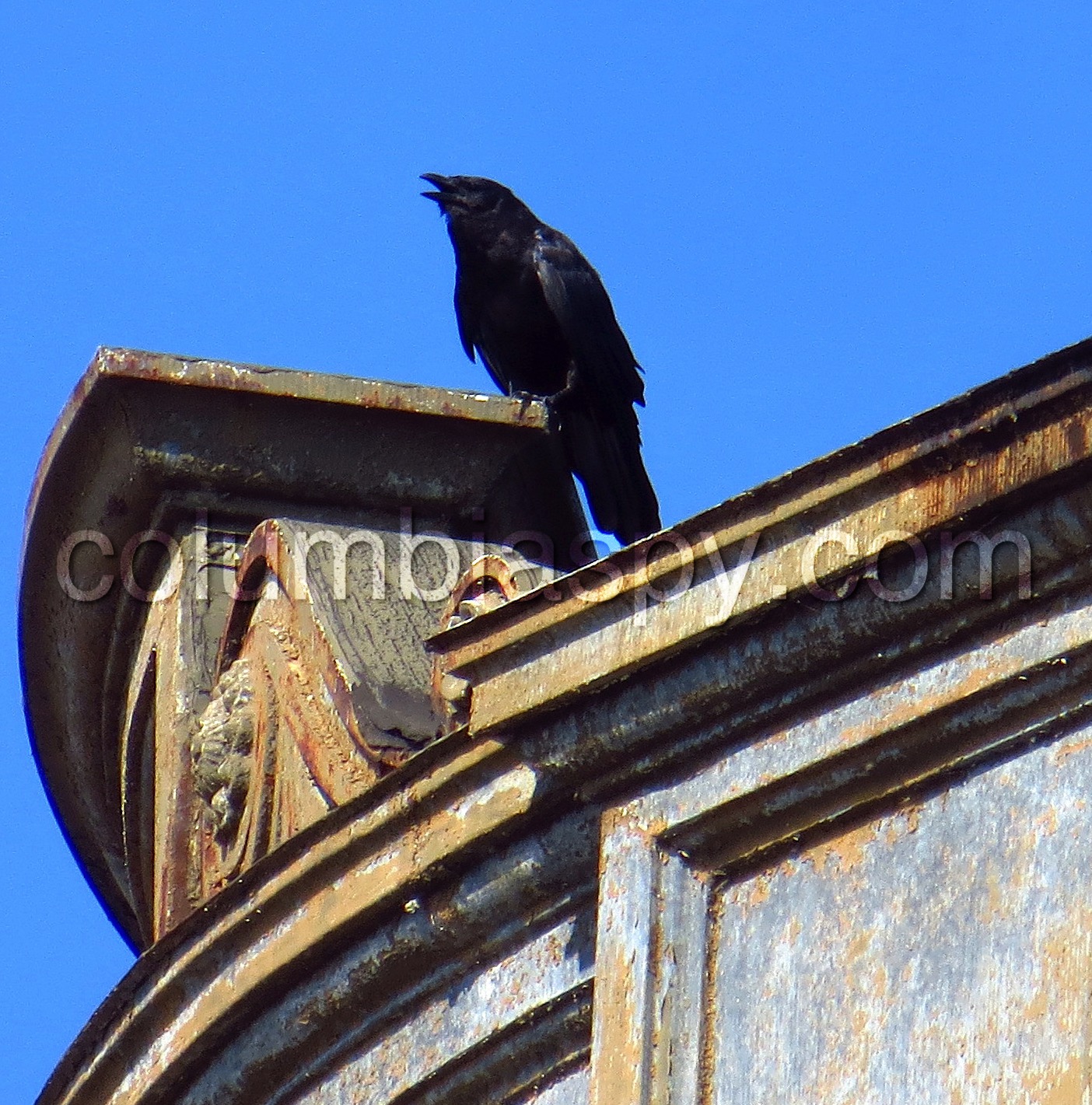 He seems to be “cawing” out a name.