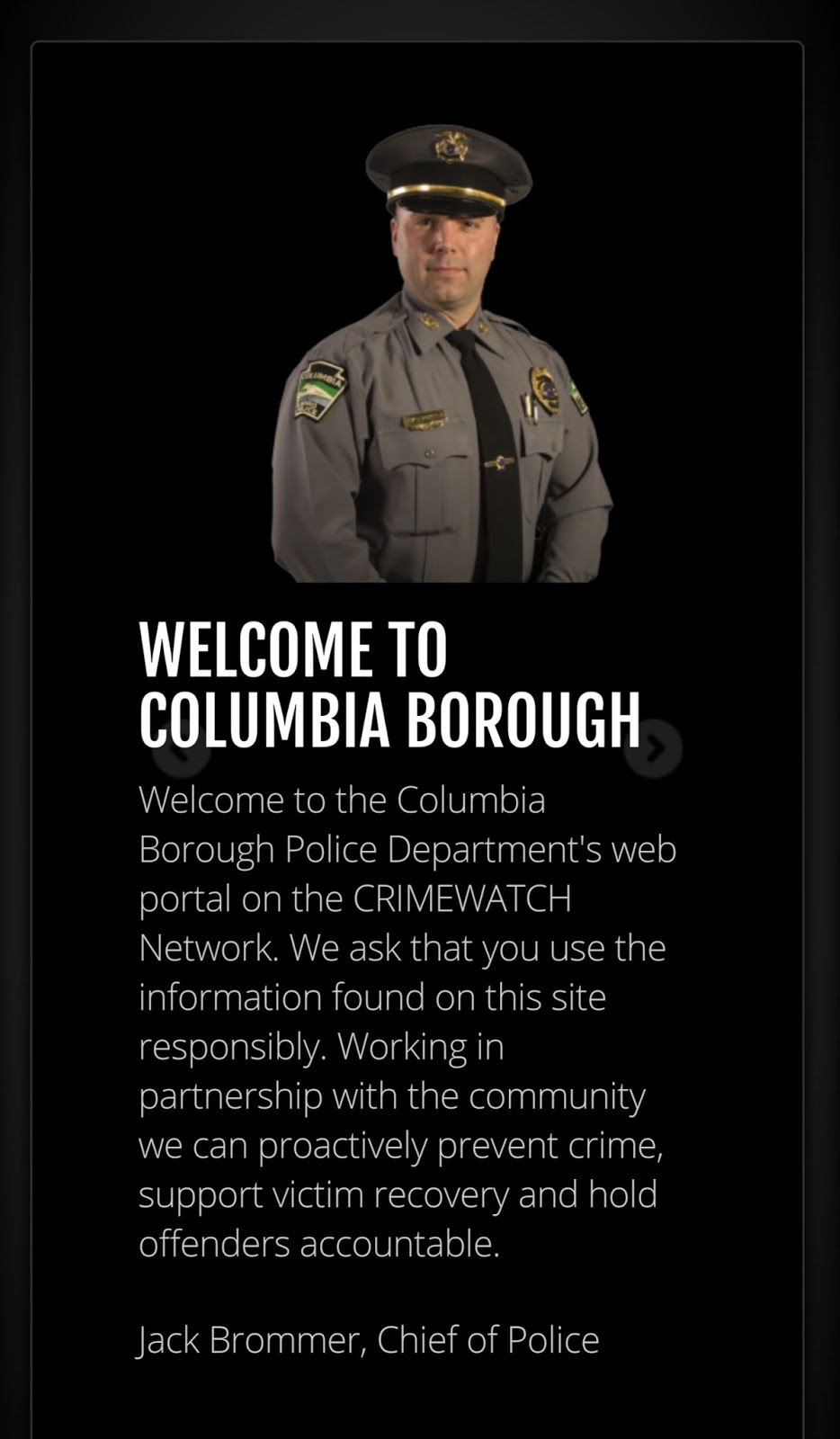 Columbia Borough Police Department now on Crime Watch GO HERE: https://lancaster.crimewatchpa.com/columbiapd/10552 Share this: Share on X (Opens in new window) X Share on Facebook (Opens in new window) Facebook More Share on Bluesky (Opens in new window) Bluesky Share on X (Opens in new window) X Like Loading... Related
