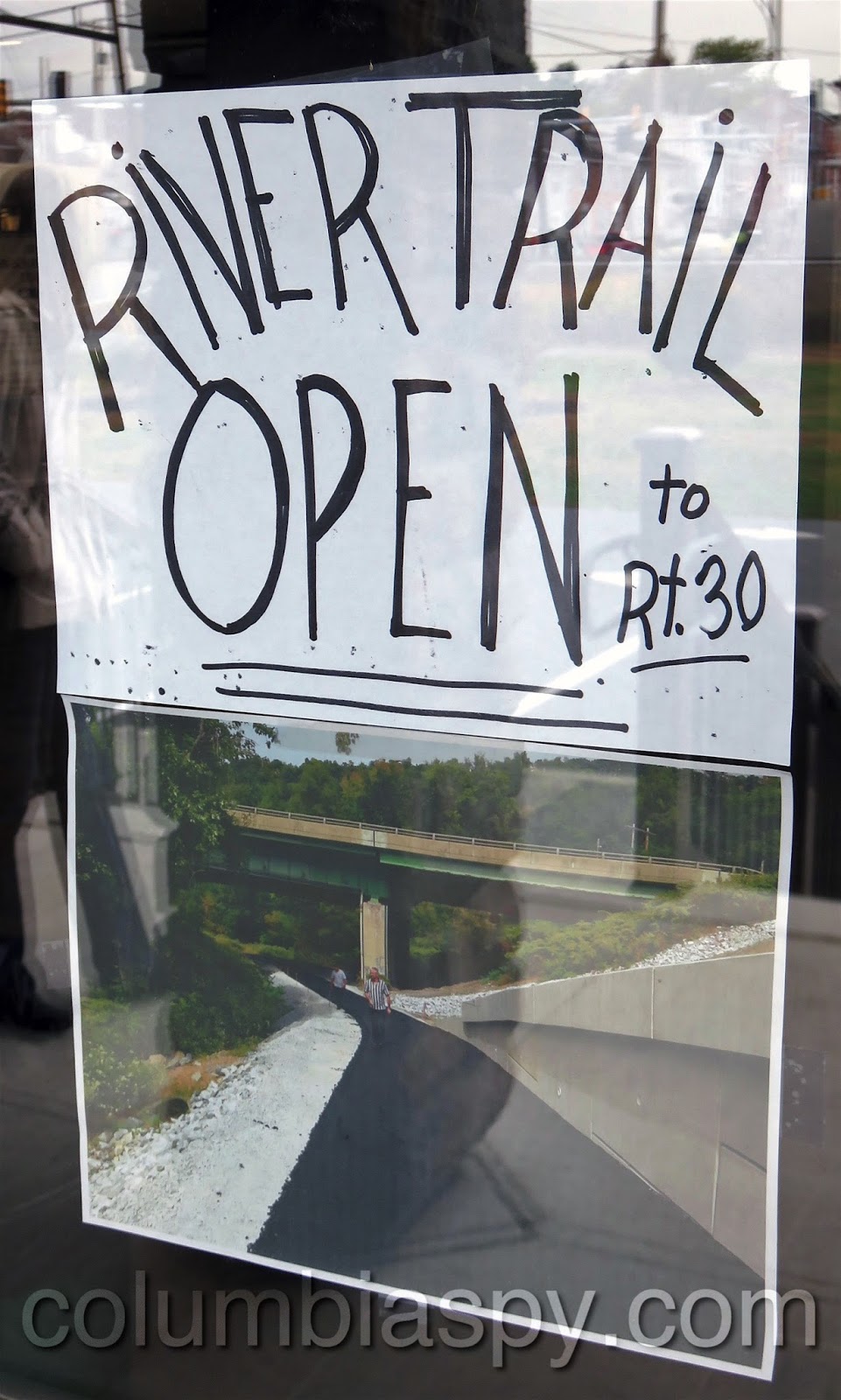 The Northwest River Trail is open only to the Route 30 (Wrights Ferry) Bridge, where it terminates in a chain-link cul-de-sac.