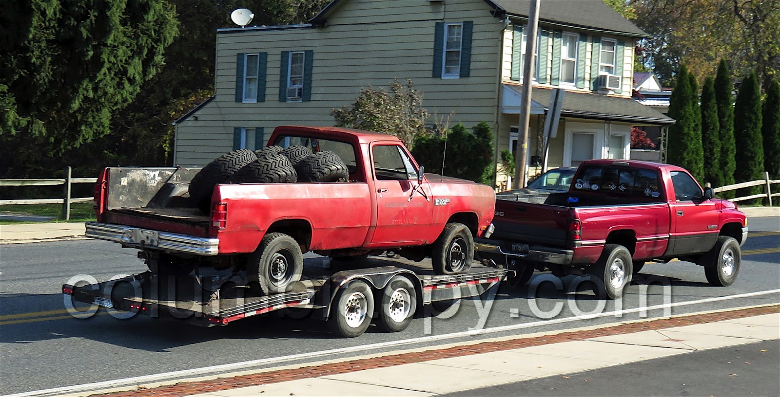 A truck hauling a truck