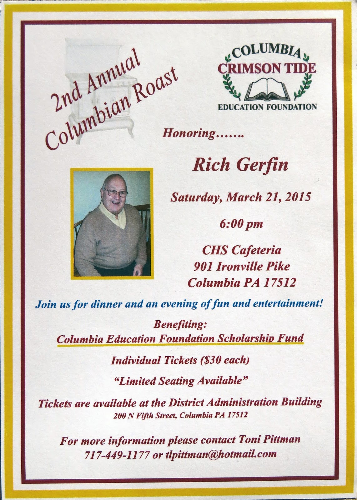 A flyer from the 2nd Annual Columbian Roast featuring Rich Gerfin