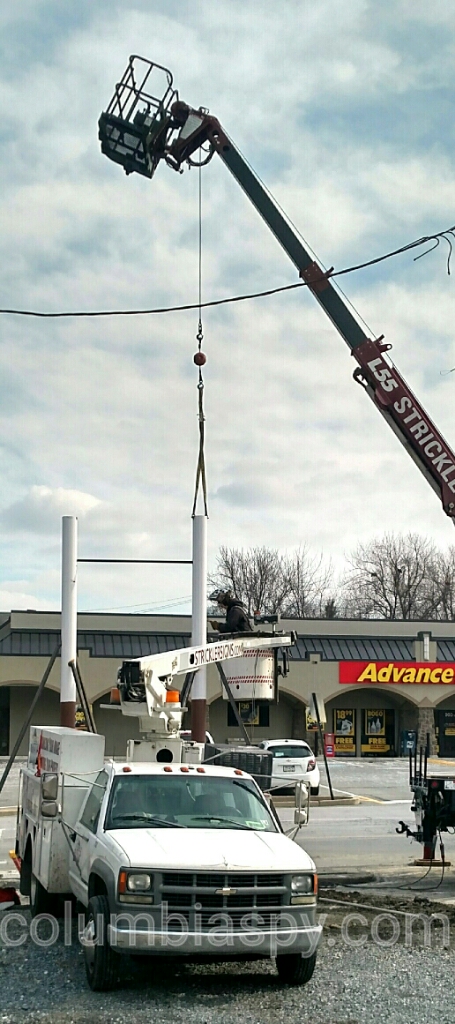 What comes down must…go up? New signposts were being installed at Columbia Plaza this afternoon, near the Lancaster Avenue entrance. The original signs and posts were torn down earlier today. Share this: Click to share on X (Opens in new window) X Click to share on Facebook (Opens in new window) Facebook More Click to share on Bluesky (Opens in new window) Bluesky Click to share on X (Opens in new window) X Like Loading... Related