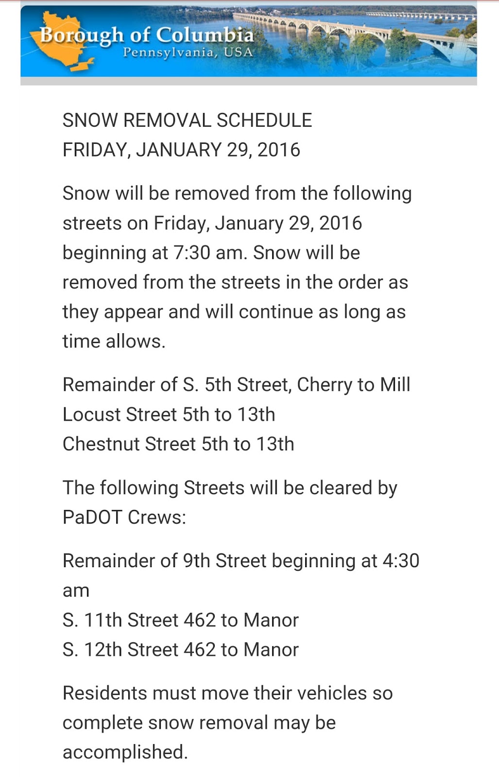 Snow removal schedule for Friday, January 29th Share this: Share on X (Opens in new window) X Share on Facebook (Opens in new window) Facebook More Share on Bluesky (Opens in new window) Bluesky Share on X (Opens in new window) X Like Loading... Related