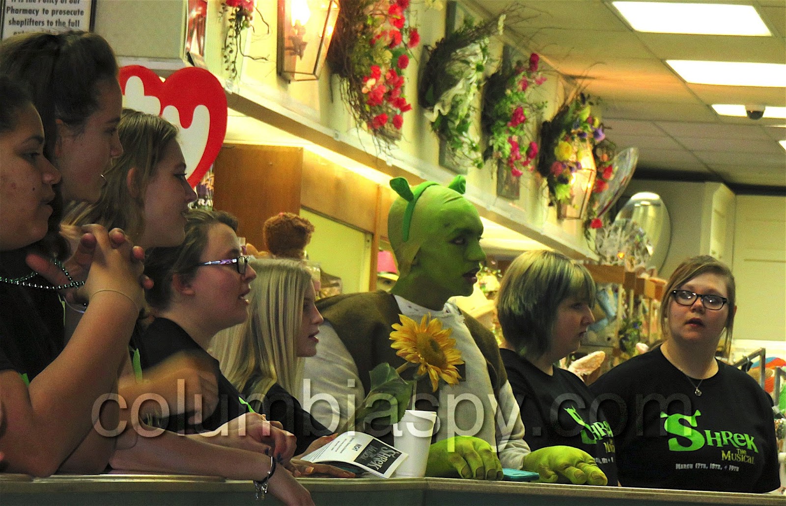 The Columbia High School Theater Department performed a sneak preview of Shrek, The Musical at Hinkle’s Pharmacy and Restaurant Thursday night. Hinkle’s donated 20% of patrons’ restaurant bills to the Columbia Drama Booster Club. Go HERE for a video.