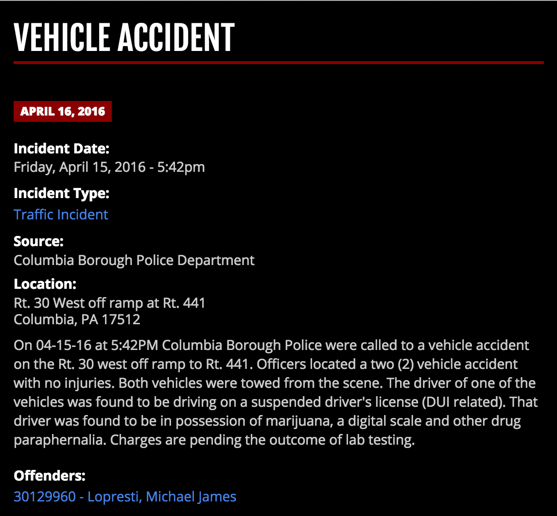 Columbia Borough Police posted the information shown below at THIS LINK.