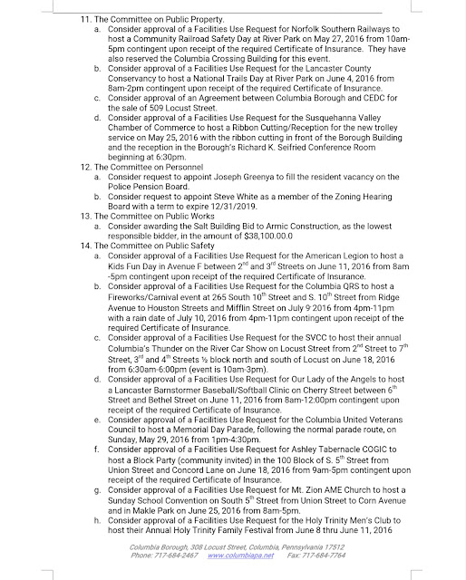 0 thoughts on “Draft agenda for May 9, 2016 Columbia Borough Council meeting”