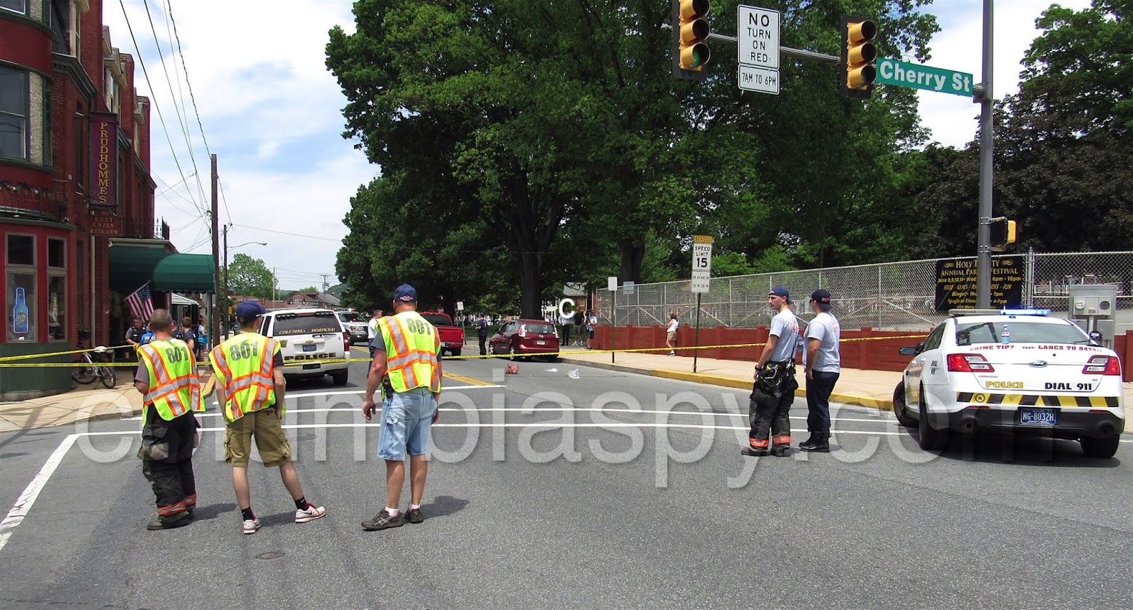 A 73-year-old woman was killed shortly after noon today at the intersection of Cherry Street and Lancaster Avenue after being hit by a pickup truck. Reportedly, the truck turned north onto Lancaster Avenue from Cherry Street and struck the woman, who was crossing the road towards Locust Street Park. Emergency personnel performed CPR at the scene, but the woman later died of her injuries. The intersection was closed for several hours as police investigated the accident scene.