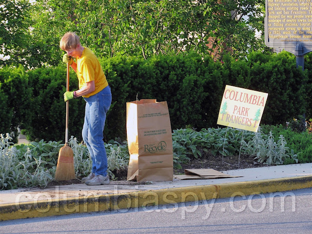 Columbia Park Rangers spruced up the plaza area across from Rotary Park last week.