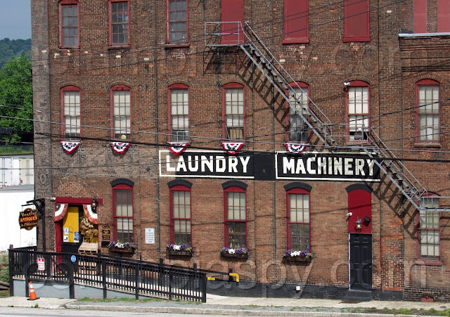 One of the many “ghost signs” around town of industries from years past. The link HERE claims the building was the home of the Columbia Laundry Machinery Company, but the first word is hard to see, because another word appears to be superimposed on it. One appears to be “SUPERIOR,” in which case the sign would read “SUPERIOR LAUNDRY MACHINERY.” The word at the top, near the peak, looks like “KEYSTONE.”
