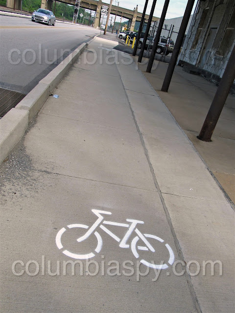 Bicycle icons were spray-painted at Columbia River Park and on the sidewalk along Route 441 Thursday morning.
