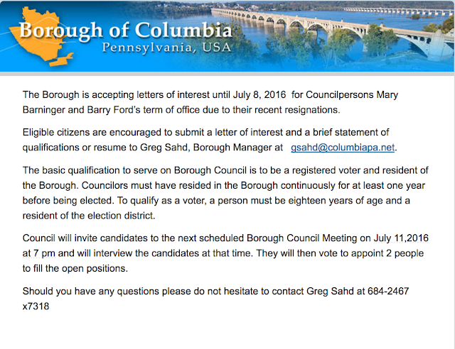 Thanks for serving the borough. Sorry to see you leave the position.Best wishes.