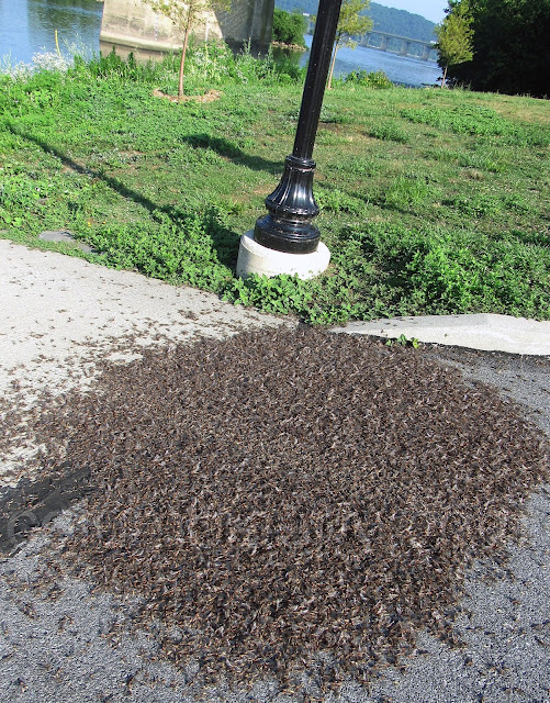 This summer’s mayfly invasion isn’t over. In fact, it’s barely begun. These photos were taken this morning (July 8) at Columbia River Park (and uptown) and show the results of last night’s assault.