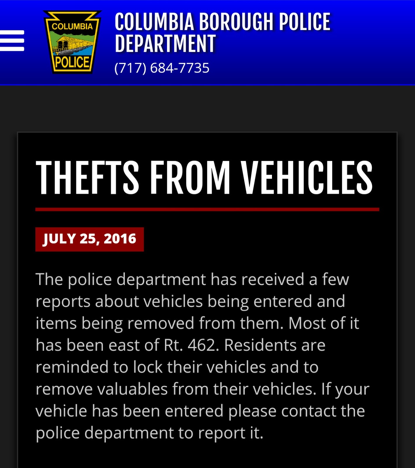 Thefts from vehicles Share this: Share on X (Opens in new window) X Share on Facebook (Opens in new window) Facebook More Share on Bluesky (Opens in new window) Bluesky Share on X (Opens in new window) X Like Loading... Related