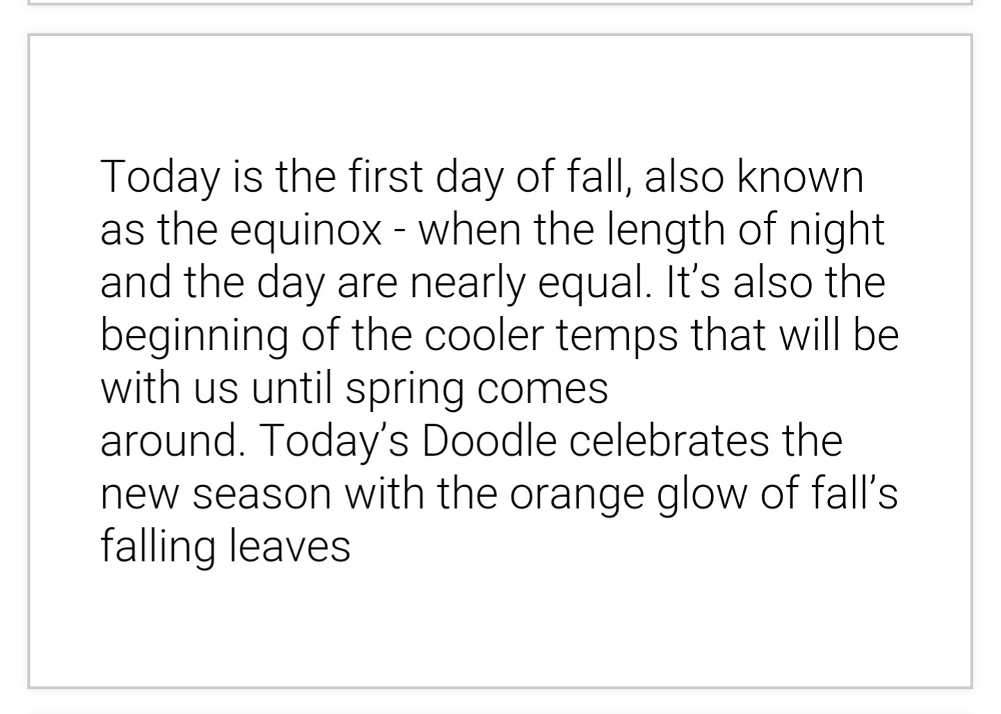 Today is the first day of Fall – Thursday, September 22, 2016 Share this: Share on X (Opens in new window) X Share on Facebook (Opens in new window) Facebook More Share on Bluesky (Opens in new window) Bluesky Share on X (Opens in new window) X Like Loading... Related