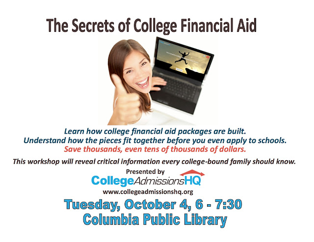 Library Happenings – Tuesday, October 4, 2016 – The Secrets of College Financial Aid Share this: Click to share on X (Opens in new window) X Click to share on Facebook (Opens in new window) Facebook More Click to share on Bluesky (Opens in new window) Bluesky Click to share on X (Opens in new window) X Like Loading... Related
