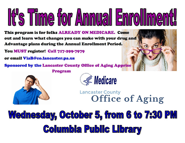 Library Happenings – Wednesday, October 5, 2016 – Medicare Annual Enrollment Share this: Click to share on X (Opens in new window) X Click to share on Facebook (Opens in new window) Facebook More Click to share on Bluesky (Opens in new window) Bluesky Click to share on X (Opens in new window) X Like Loading... Related