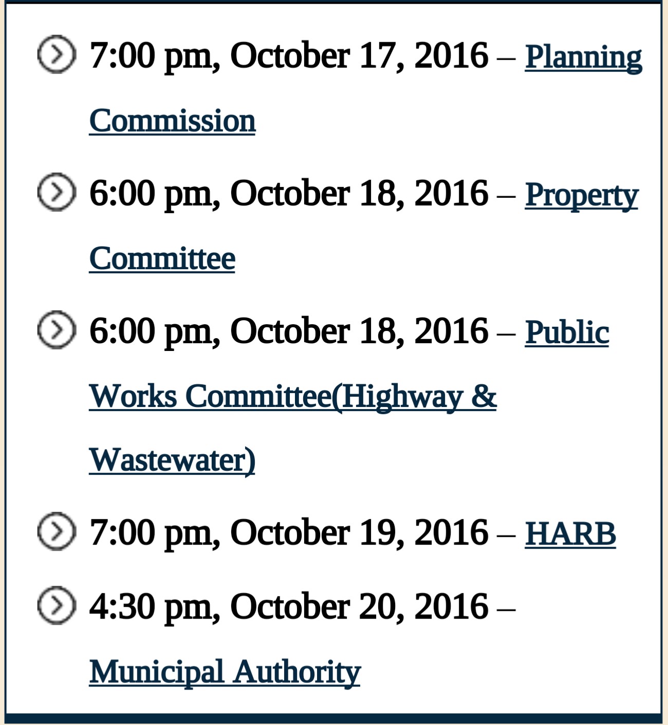 Meeting Schedule, Week of 10-17-16 All meetings are at Borough Offices, 308 Locust Street, except School Board meeting, which is at District Admin Building, 200 N. 5th Street. Thursday, October 20: Community Development 6 p.m. Thursday, October 20: School Board 7 p.m. Share this: Share on X (Opens in new window) X Share on Facebook (Opens in new window) Facebook More Share on Bluesky (Opens in new window) Bluesky Share on X (Opens in new window) X Like Loading... Related