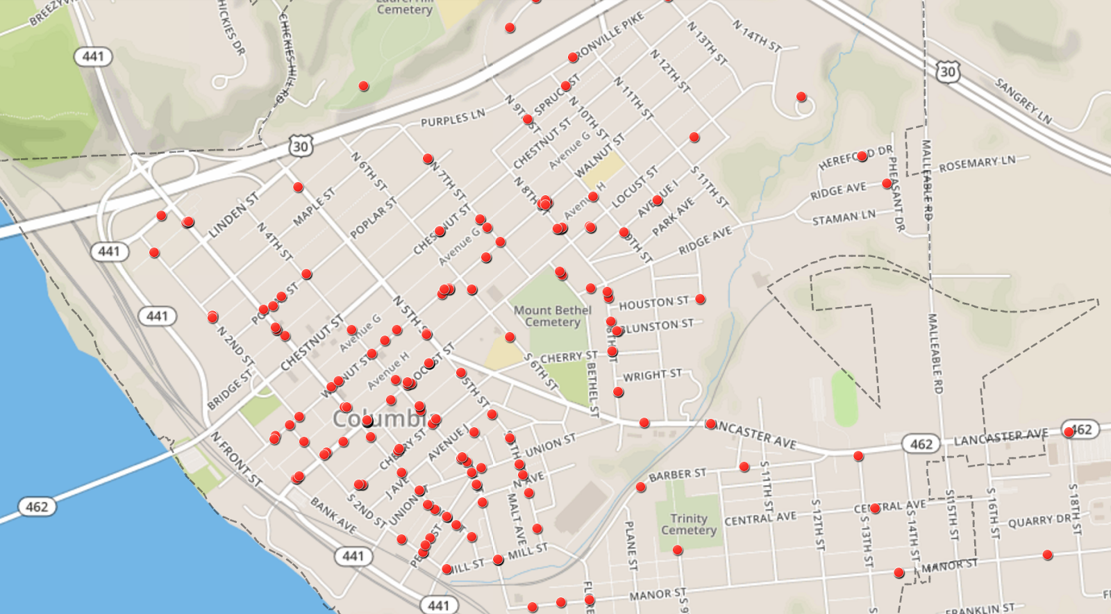 Many individuals worked on the concept, compilation and mapping of an estimated 2,500 incident points, most notably the Lancaster County GIS division, Lancaster County-Wide Communications, and Nicholas E. Good, a research intern at the District Attorney’s Office.