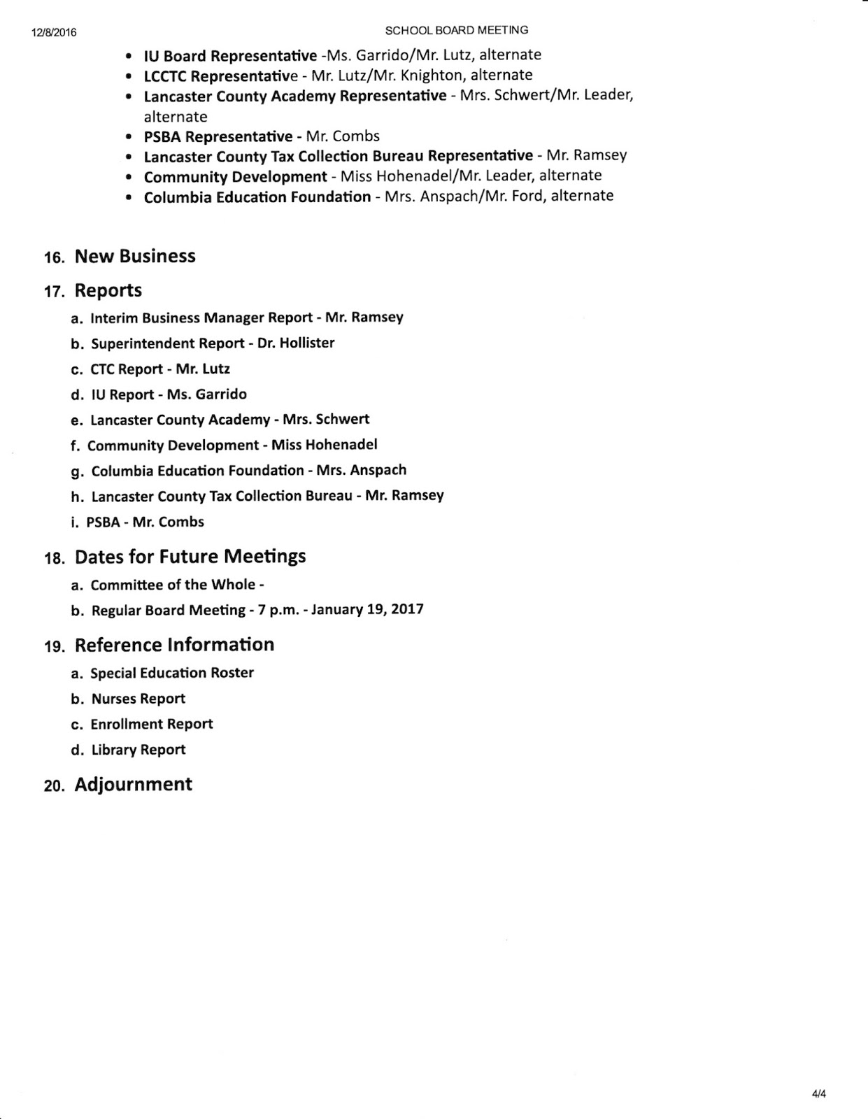 School board member Leo Lutz has resigned from the board, effective December 9, 2016, it was announced at Thursday night’s meeting. Board President Keith Combs thanked Lutz for his service on the board and wished him well on his future endeavors.