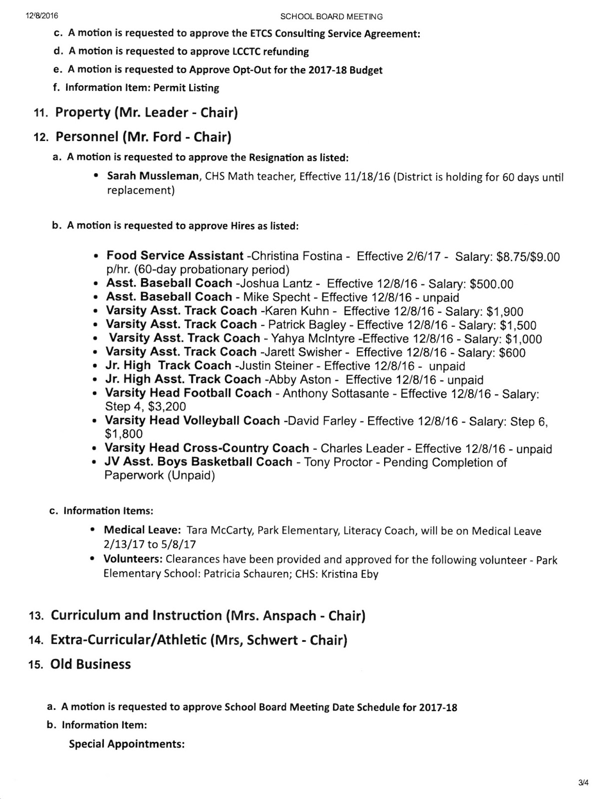 Combs said that anyone interested in filling the vacancy should send a letter to Deb Smith, the board secretary, by January 2, 2017.